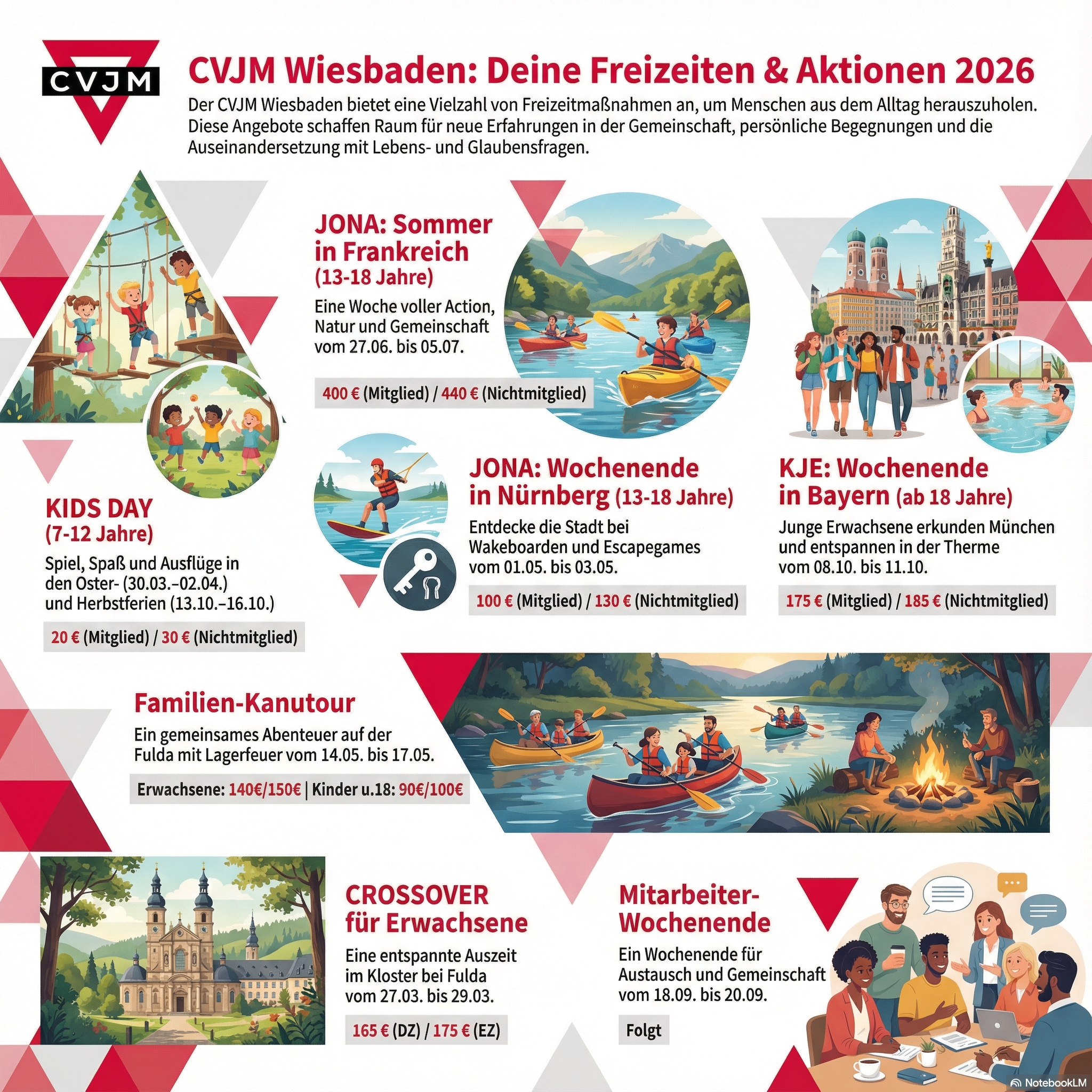 Der CVJM Wiesbaden bietet im Jahr 2026 wieder besondere Freizeitmaßnahmen und Seminare für Kinder, Jugendliche, junge Erwachsene und Familien an.